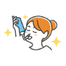 - 6. 鼻うがいボトルを逆さに持ち、ノズルの先端を軽く鼻にあて、前かがみになってください。